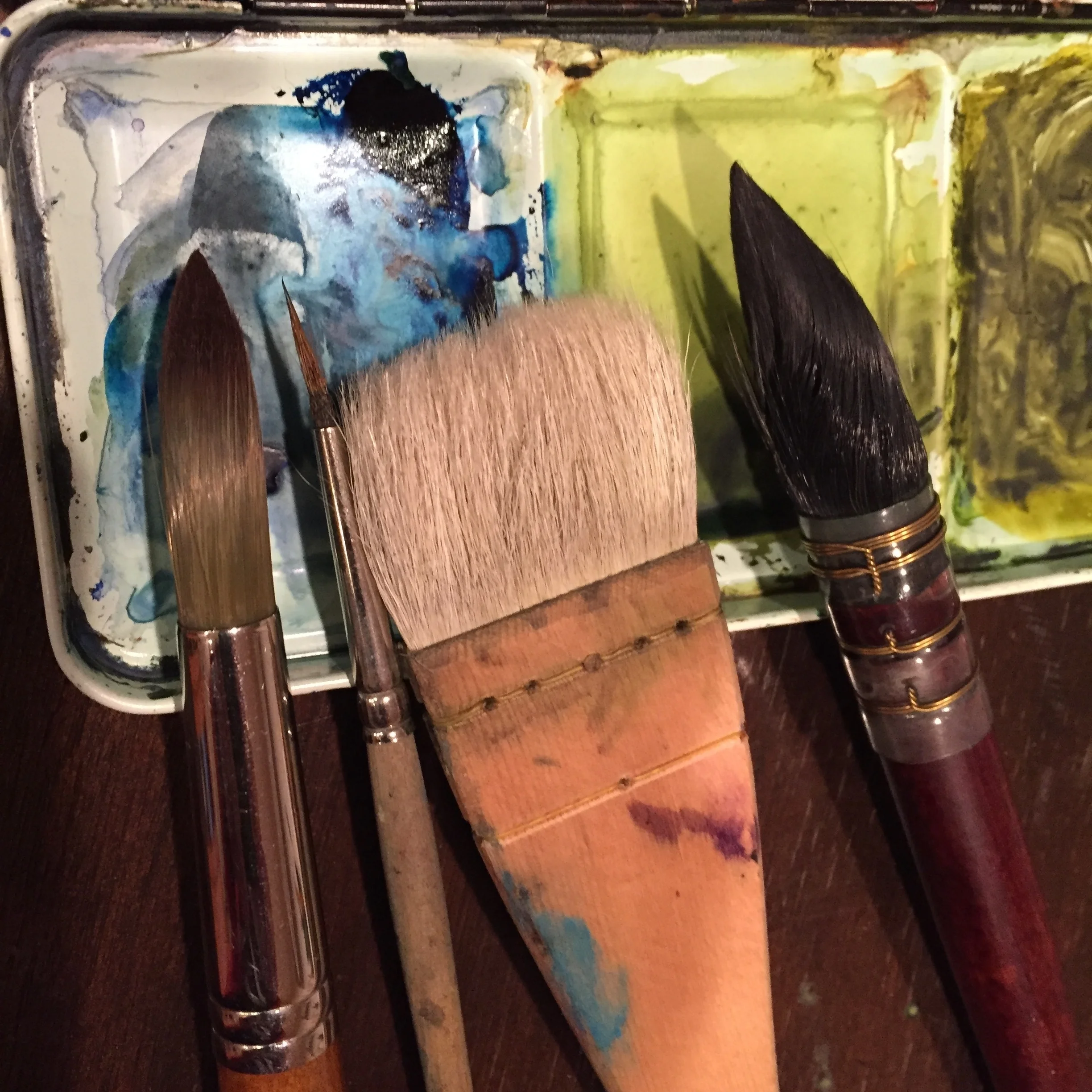 I started with many brushes, but now find I use only 4 most of the time. My brushes are synthetic, but soft and hold the pigment like real sable. The wide Japanese hake brush is one of my favorites.